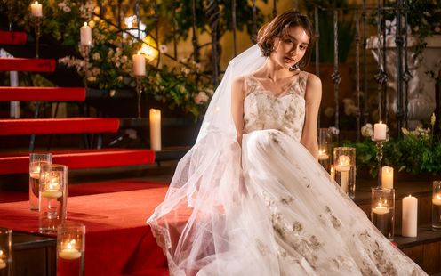 柔らかな光に包まれた静かな空間は、ふたりの感性で自在にコーディネート可能。上品でシックな雰囲気から、幻想的でドラマティックな演出までどんなスタイルも美しく映えるからこそ、理想の世界を思いのままに創りあげて。