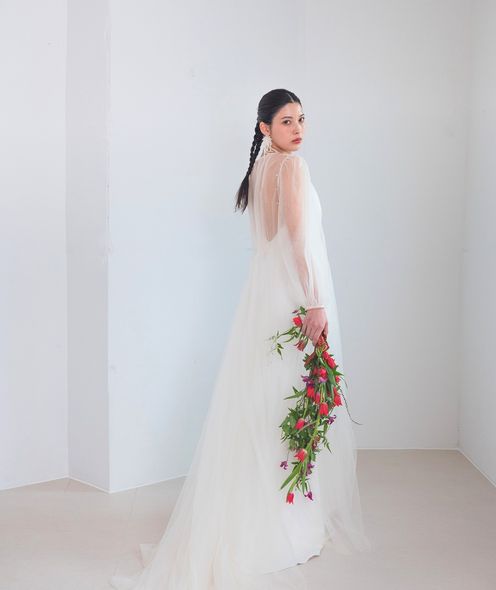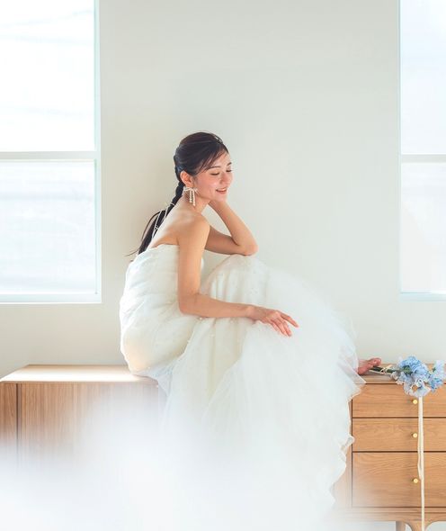 経験豊富なスタイリストが花嫁に寄り添い、シルエットや素材感まで徹底的にこだわって提案します。スタイリスト兼デザイナーが在籍しているため、花嫁の声を反映したオリジナルドレスが次々と誕生するのも大きな魅力。