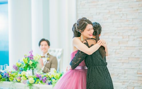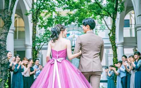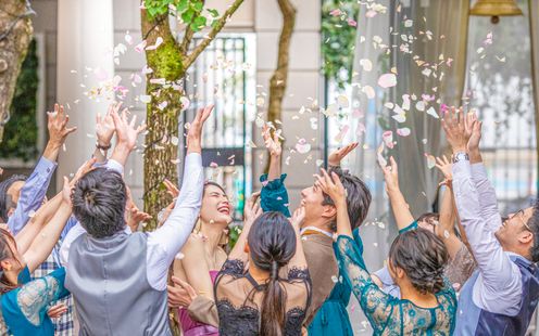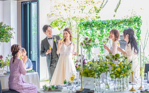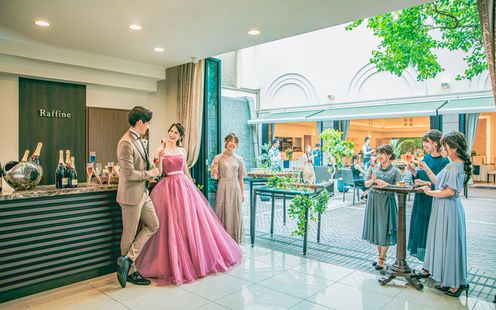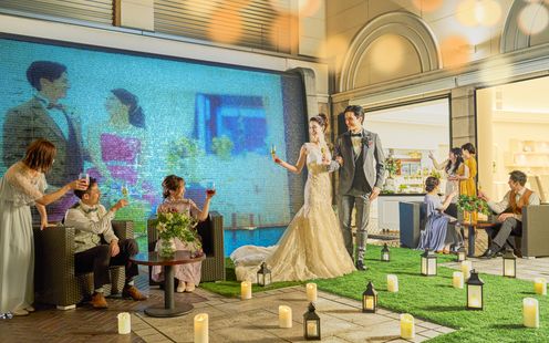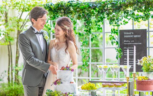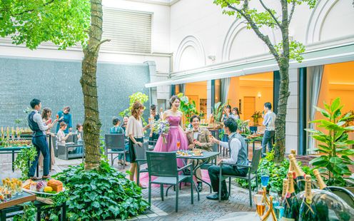 フラワーシャワー&ブーケトスなどのアフターセレモニーをはじめ、パーティではフォトタイム&デザートブッフェ、さらにナイトタイムには映像演出などふたりらしい希望の演出が叶います。そよ風が心地よい開放感あふれるガーデンでゲストとリラックスしたひとときをお楽しみください♪