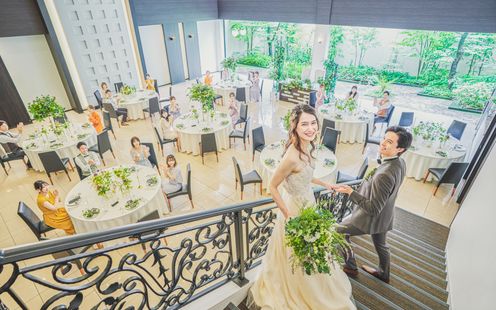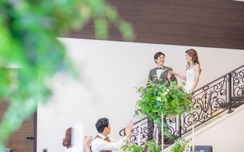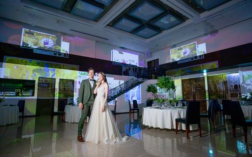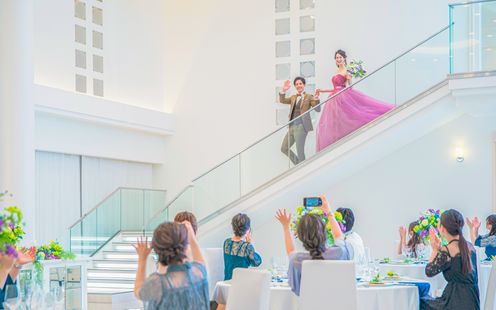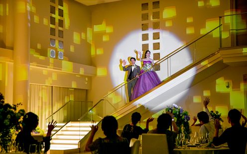階段入場や、ライブ感あふれる映像演出が魅力!自然光の差込む上品なパーティ空間