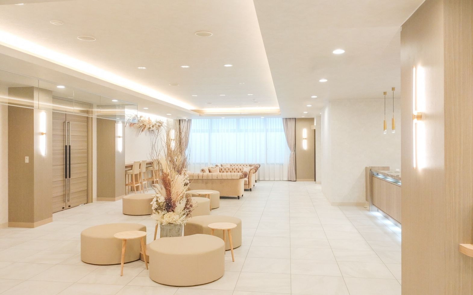 早く到着したゲストには、柔らかな自然光が差込む上品なラウンジで祝宴前のひとときをお寛ぎいただけます。