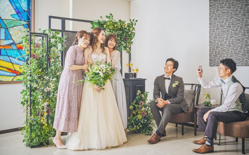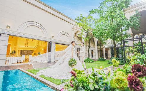 遠方ゲストが足を運びやすい、富山駅から徒歩2分と好立地。純白のチャペルと緑豊かなガーデン、プロジェクションマッピングなどの映像演出が話題の一軒家です。当日は貸切でふたりらしいアットホームな1日をお過ごしいただけます。