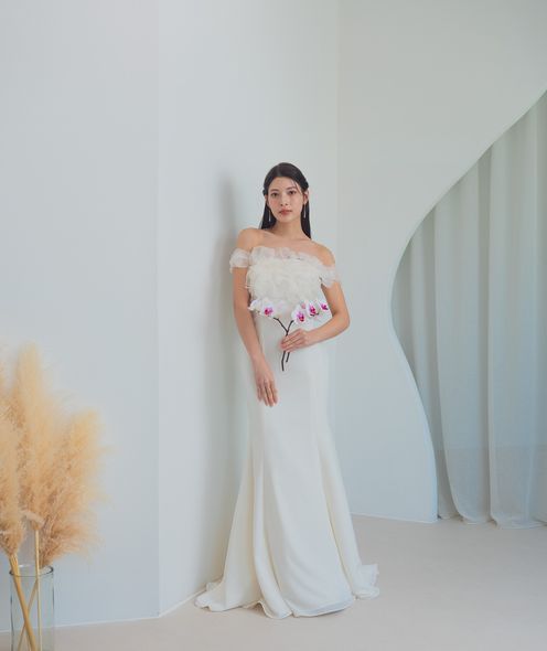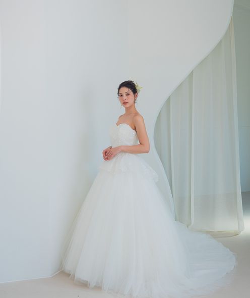 経験豊富なスタイリストが花嫁に寄り添い、シルエットや素材感まで徹底的にこだわって提案します。スタイリスト兼デザイナーが在籍しているため、花嫁の声を反映したオリジナルドレスが次々と誕生するのも大きな魅力。