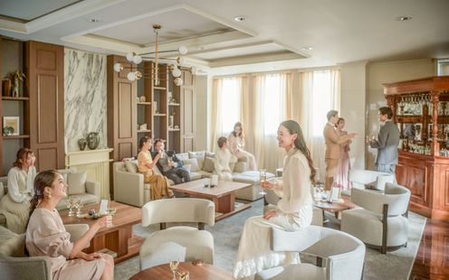 ガーデンを望む優しい光に包まれるオフホワイトの空間【アイリス】。ゲストと笑顔あふれる時間