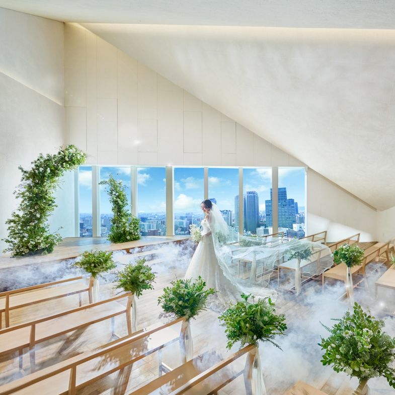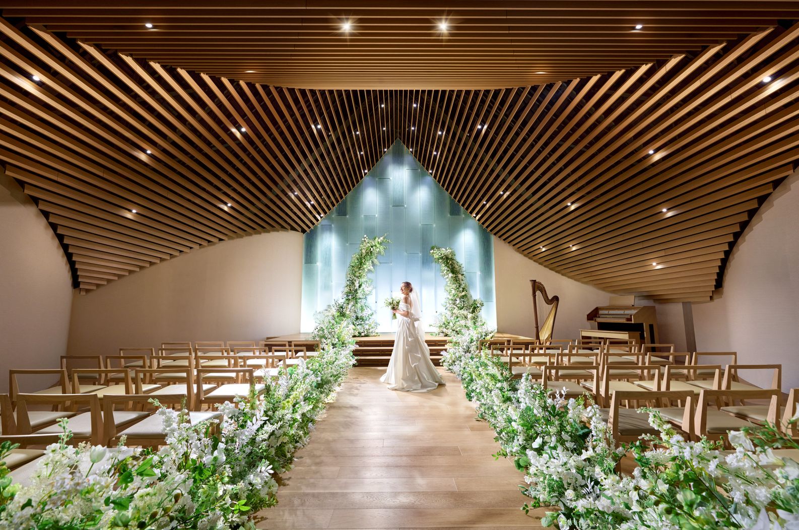 02.【最上階チャペル】自然光と芸術美でつくられた見たことがない美しさ。花嫁が絵になる空間