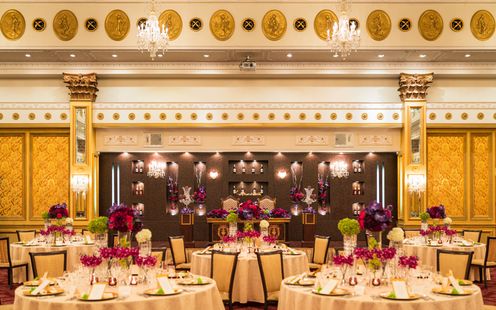 ラグジュアリーな気分に満たされる気高く開放的なパーティルーム。大勢のゲストと優雅な一日を