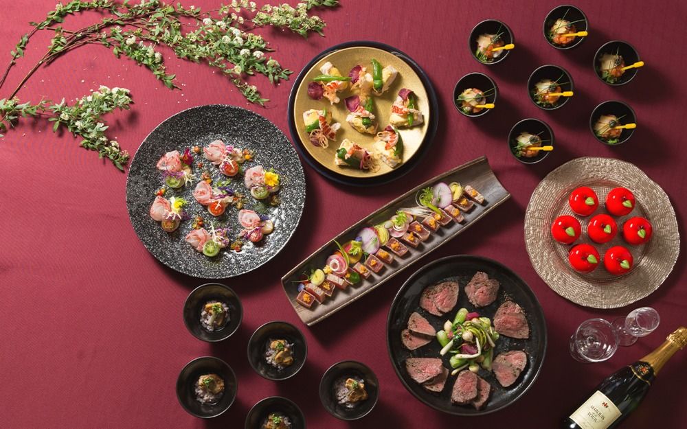 ホテル雅叙園東京とエリスリーナ西原ヒルズガーデンがコラボレーションしたスペシャルメニュー、オードブルからデザートまでお好みの料理を自由に組み合わせてお選びいただけるコース料理、特選食材でゲストに華やかな気分を目でも舌でも楽しめる卓盛り料理、丹精込めて仕上げた会席料理。おふたりとゲストにとって最高で特別な一日のために、おもてなしの心が伝わるお料理で、幸せと慶びのお手伝いをさせていただきます。おふたりだけの特別メニューも承りますので、シェフへお気軽にご相談ください。パティシエ特製のデザートブッフェは、お客様の声から生まれたエリスリーナ自慢のプラン。素材を活かしたやさしい味わいをお楽しみください。