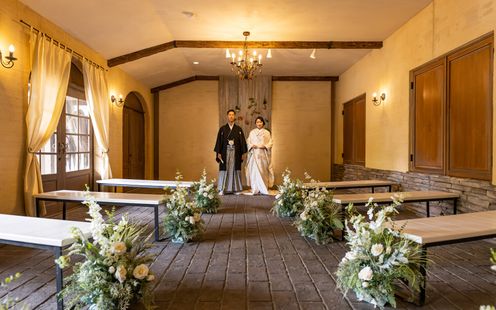 柔らかな自然光が差込む温かみあふれるチャペルでは教会式、人前式はもちろん、日本の伝統儀式を行う神前式も叶います。これまでお世話になったゲストに見守ってもらいながらの温かなセレモニーを。