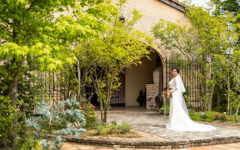 緑が彩る南仏プロバンス風の一軒家を当日はふたりだけで空間もスタッフもすべて貸切!ウェディングコーディネーターがふたりの憧れを形にして自由度高いウェディングを実現いたします。