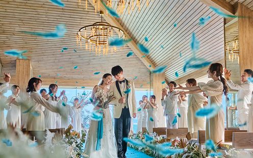 型にはまらず自由なウエディングを叶えたいふたりにおすすめのビーチ挙式。海を目の前にして迎える挙式はドレス姿で佇むだけでフォトジェニック。ビーチでのフラワーシャワー演出も人気!ゲストの記憶に残る時間を。