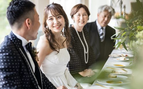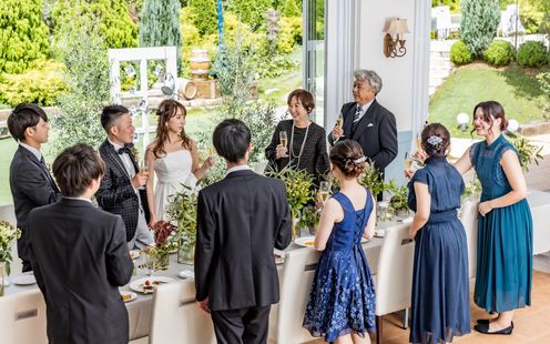 一日一組貸切だからこそ実現できるおふたりらしさいっぱいの一日をプロデュースします。自然を感じながら日常を忘れゲストと一緒に美食を味わい、会話を楽しみ、感謝を伝える、そんな時間をお過ごしいただけます。親族と友人でリラックスした時間を楽しんでください♪