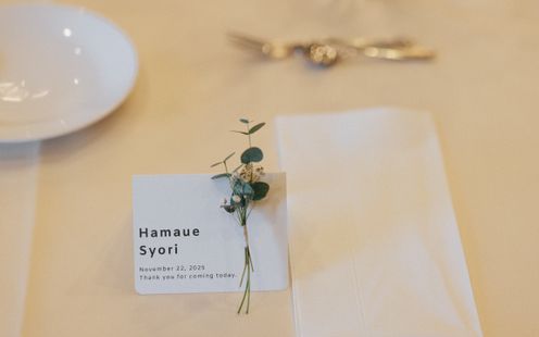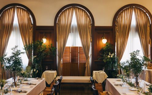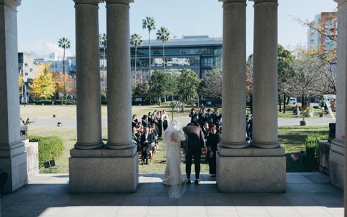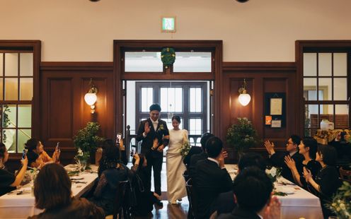 時を重ねた建築美が醸し出す空気は、華美に飾らなくてもそのままでおもてなしの空間に。形式にとらわれず、ふたりの想いをかたちにして感謝の気持ちを伝えてみては。ウェルカムボードや思い出の写真、季節の装花&アイテムなど自由なコーディネートをお楽しみいただけます。