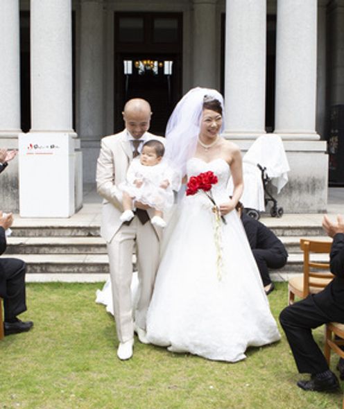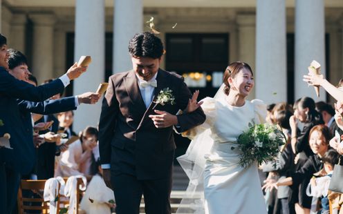 挙式ステージはクラシカルなムード漂うロビーと、芝生のガーデンからセレクト。どちらを利用してもゲストとの距離が近く、一人ひとりの表情を感じながら歩むヴァージンロードは、より深い感動に包まれるひとときに。青空のもと、やさしい光と風に見守られるガーデン挙式では家族の一員であるペットも一緒に参加可能でドッグリング演出などもOK!また、ゲスト全員での記念撮影や、ブーケトスやフラワーシャワーなどのアフターセレモニーも思う存分お楽しみいただけます。趣のある洋館を舞台にアットホームなセレモニーを叶えて!