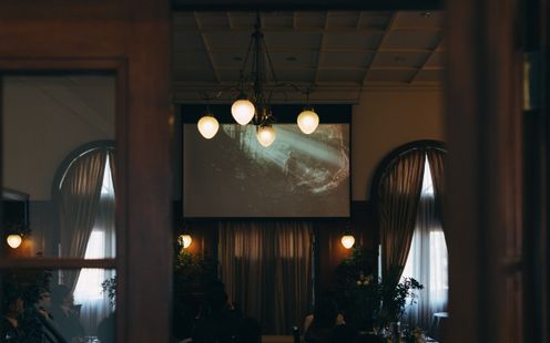 落ち着いた内装で、やわらかな光と影が織りなす幻想的な雰囲気漂う上質な非日常空間。スクリーンを使った映像演出も可能で、ふたりの思い出や感謝のメッセージをより印象的に届けることができます。華やかさだけではなく、静けさやぬくもりも感じられるこの場所は、大切な人たちと心からリラックスして過ごせるのが魅力。時間とともに雰囲気が和やかに変わる会場で、かけがえのないひとときをお過ごしください。なお、二次会での利用も可能です。