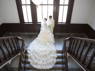クラシカルな階段は、花嫁の美しさを一層引き立てる絶好の撮影スポット。