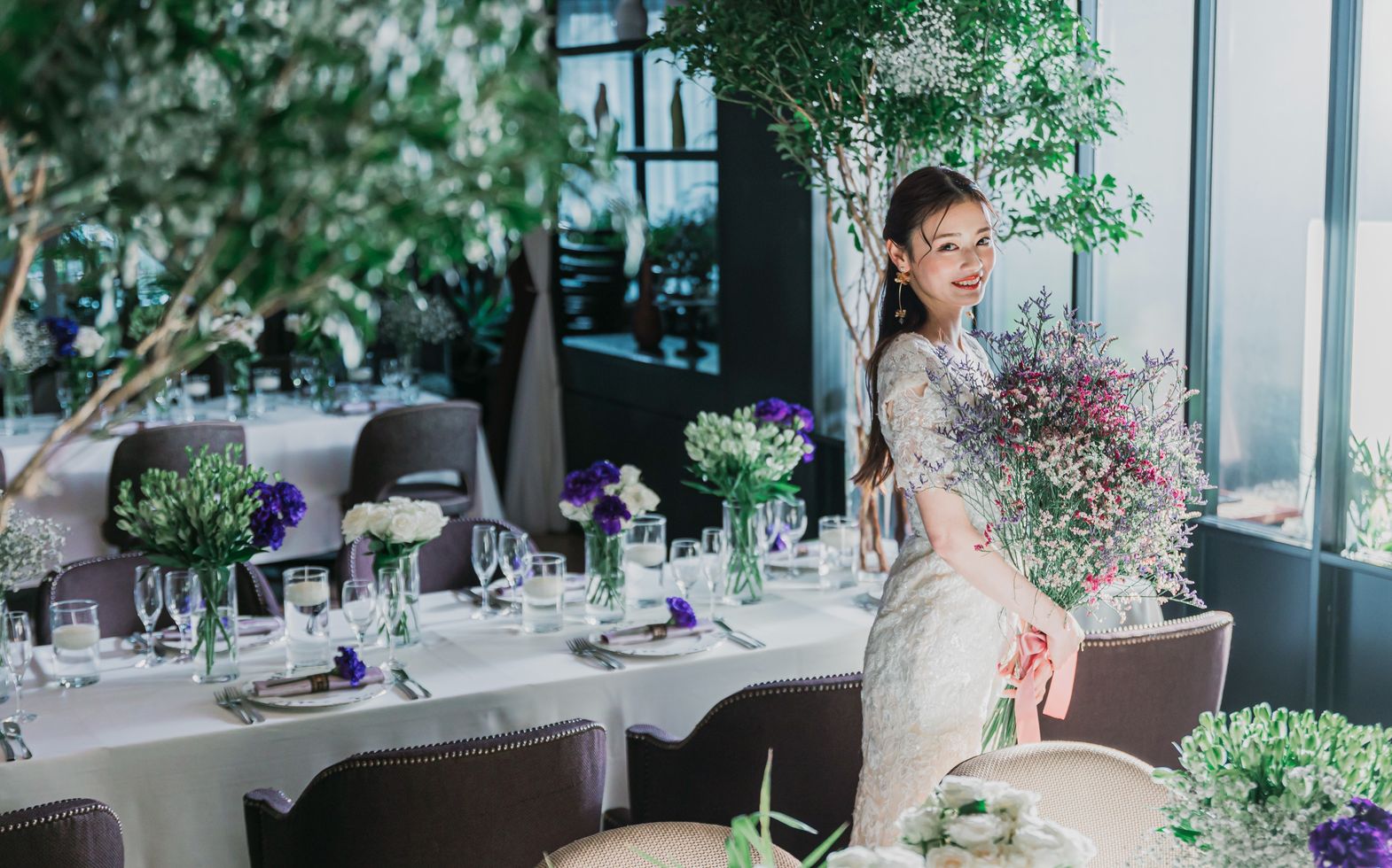 都心にありながらも、グリーンに囲まれ自然と寛げるリラックス空間を貸切に、思い思いのパーティを実現。メイン席はチェアーやソファーなどお気に入りのアイテムや装花で飾って、おふたりらしい世界観を表現できます。ゲスト人数によってテーブルレイアウトも変更可能。コンセプトに合わせて自由自在に使える柔軟性も魅力的です。