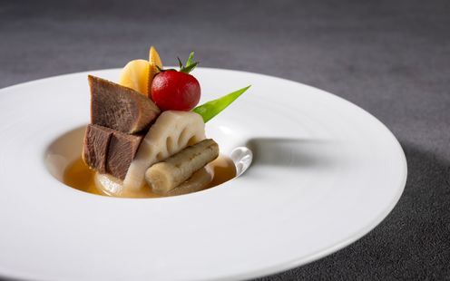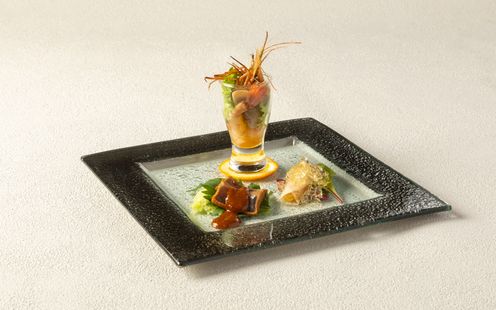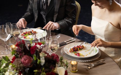 センチュリーキャッスルホテルの料理人が縦承する伝統と、日々磨きあげた革新的で豊かな発想から生まれたおもてなし料理。婚礼料理コースは前菜からデザートまで全7品。「和・洋・中」を織り交ぜた多彩なメニューの中からふたりのこだわりやゲストの好み・年齢層などに配慮してオリジナルコース料理を提案いたします。
