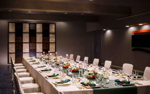 フランス語で「壁画」や「絵画」の完成品を意味するタブロー。大きな3つの品格あるフレームを壁一面に配したゴージャスな雰囲気のパーティ会場です。