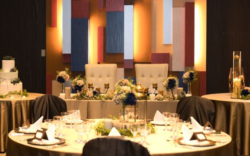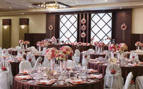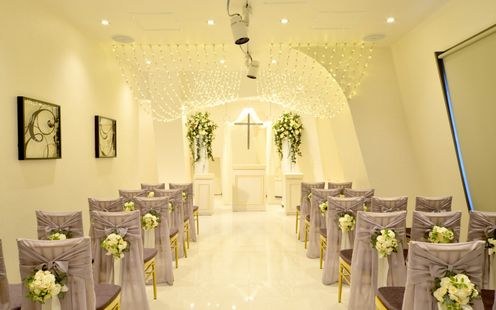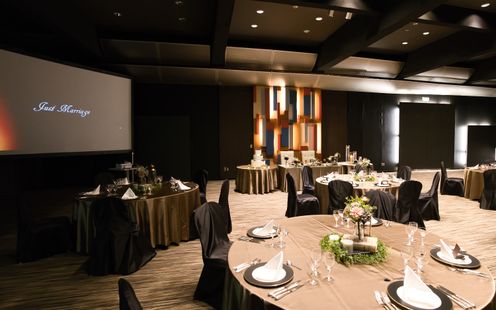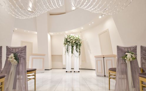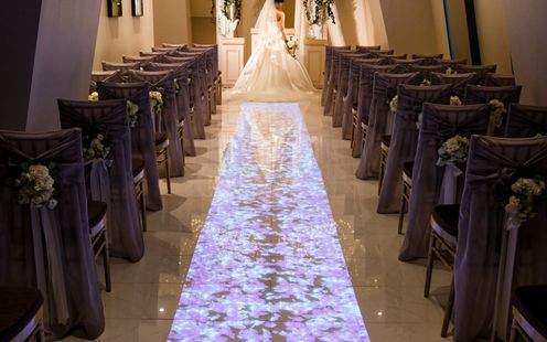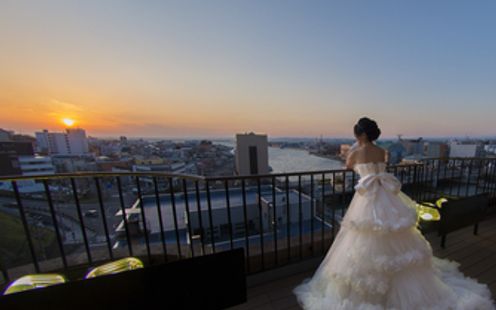 フランス語で「お気に入りの空」の名を持つこのチャペルはその名の通り、釧路の街並みや港、海を一望できるホテル最上階に位置します。道東では初めてチャペルにプロジェクションマッピングを導入。映像が描き出す光と華に彩られたウエディングロードを新婦がゆっくりと歩む姿は絵になります。また、バルコニーに出て青空に向けてバルーンリリースを行ったり、河口に沈みゆく夕日を背景に写真を撮ったり、などこの場所でしかできない体験をゲストとともにお過ごしいただけます。