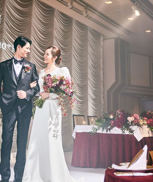 落ち着いた空間はゲストとの親密なひとときを演出し、正統派でありながらもシックなトレンド感のあるウエディングが叶います。