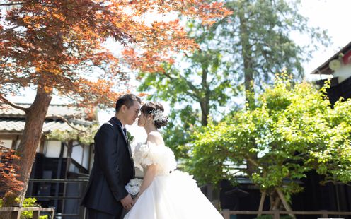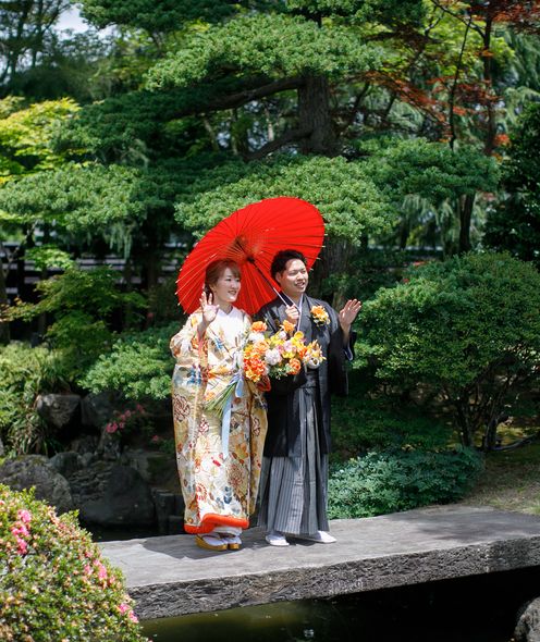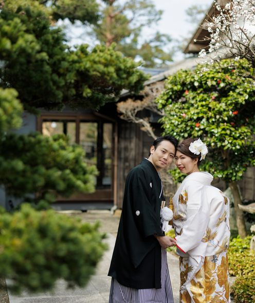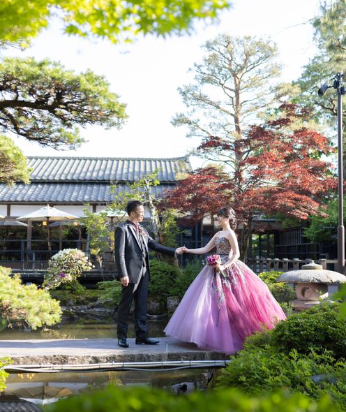 やわらかな陽光がそそぐ広大な日本庭園は、春の梅、新緑、秋の紅葉、冬の雪景色と四季折々に表情を変え、 挙式や写真に彩りを添える小林楼ならではの特別な舞台。どこを切り取っても絵になる空間で、色褪せない思い出の1枚を残していただけます。