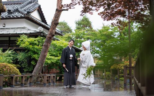美しい庭園と大正の面影を残したクラシカルかつモダンな空間に似合う和装も、ドレスも多彩な品揃え。衣装小物も豊富に取り揃えております。