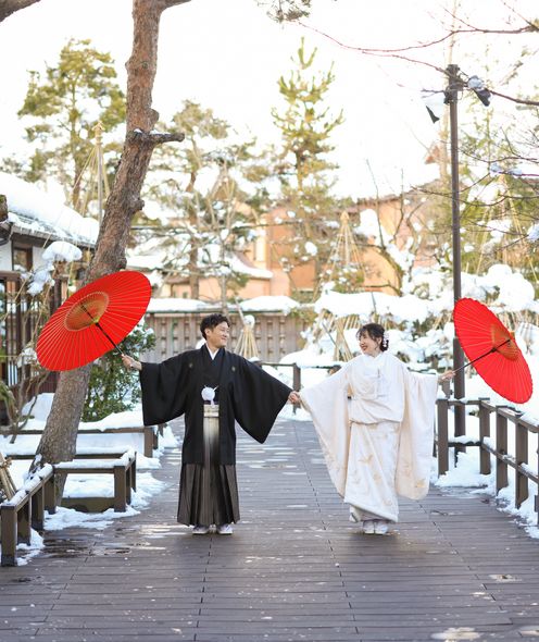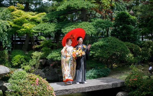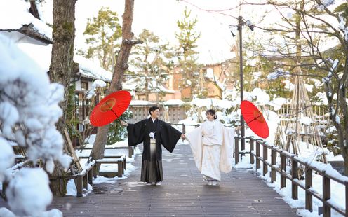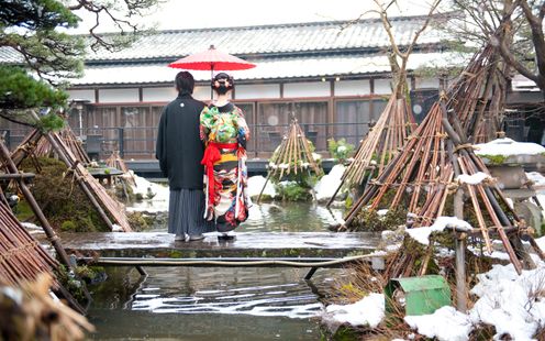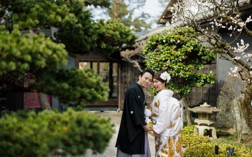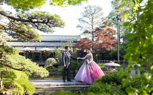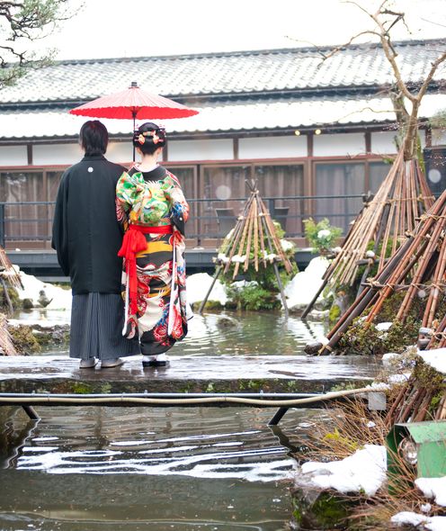 新潟・見附に1915年(大正4年)創業。大正ロマン薫る歴史的建造物と、名庭師が手がけた四季彩る1,000坪の大名庭園が魅力。そのすべてを贅沢に貸切り、ふたりの一日を優雅に彩ります。