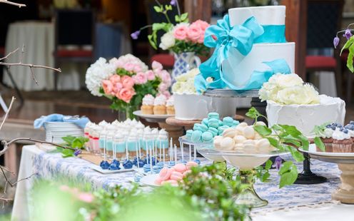 館内のどのお部屋からでも眺めることができる庭園では記念撮影はもちろん、デザートビュッフェもお楽しみいただけます。ナイトタイムにはキャンドルや提灯をともして幻想的な雰囲気も味わうことができます。
