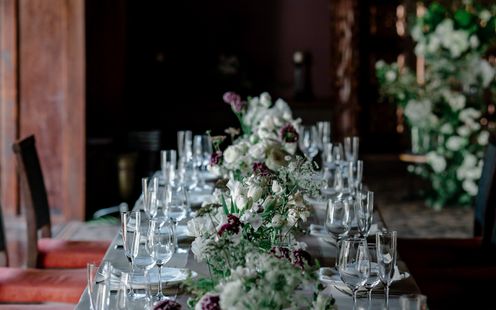 ふたりの憧れのイメージを丁寧にヒアリングして担当のフラワーコーディネータが会場スタイリングを提案。具体的なイメージがわかなくても、まずは何でも気軽に相談してください。お話しを聞きながらふたりらしいおもてなしの形に創り上げます。