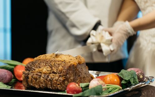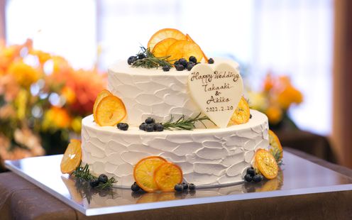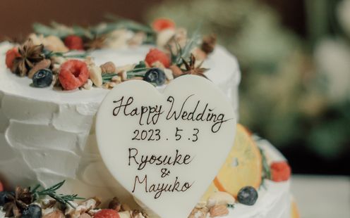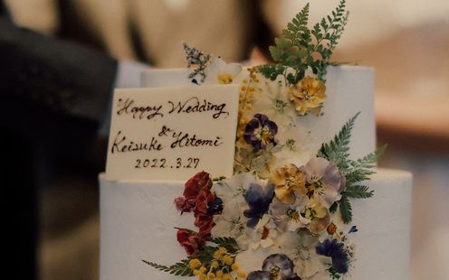 お皿のセレクトからテーブルセッティング、アクセントの草花まで結婚式全体のイメージとマッチするよう、さまざまに用意。料理は食材のうまみを最大限に活かしたフレンチベースのコースメニュー。新鮮な海の幸・山の幸を用い、シェフが心をこめて作った出来立て料理をオープンキッチンから提供します。また、好みや体質に合わせたアレンジや、ふたりそれぞれの故郷の名産や思い出の味をメニューに取り込むことも可能です。こだわりを遠慮なくお聞かせください。