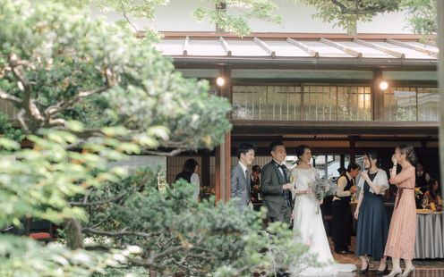 日本庭園を望む天井の高い100畳もの大広間で心温まるパーティを