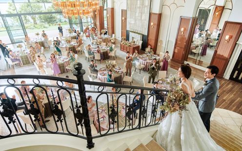 高級感溢れるシャンデリアなど、ワンランク上の雰囲気を演出するインテリアが主役のおふたりを引き立て、憧れの階段入場も叶います。