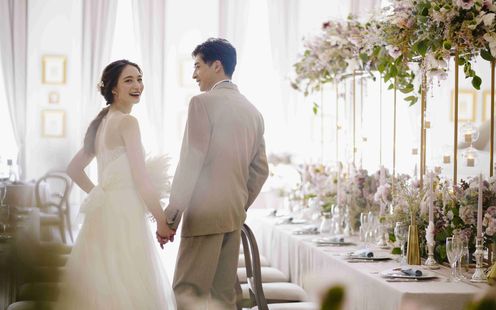 オリジナルウェディングにふさわしい、新婦一人ひとりの想い、憧れ、テーマ、スタイルなど様々なリクエストに500着以上のドレスから、専属のプランナーやスタイリングのプロと一緒に、ドレスやご自身の雰囲気とのバランスを見ながら、最高の立ち姿になるまで、ドレスアイテム&ブーケまでいろいろと選んでいく過程も愉しんでいただけます。また、個性光るカラードレス、和装、タキシードもトレンドラインを取り揃えておりますので気軽にご相談ください。また、エステ、ヘアメイクリハーサルもサポートいたします。