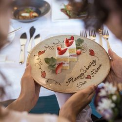 | 持込料金 | ドレス・衣装(33,000円)・装花(無料)・ブーケ(無料)・引き出物(無料)・引き菓子(無料)・印刷物(無料)・音源(無料)・DVD(無料)・飲み物(持込不可)・ウェディングケーキ(持込不可)・カメラマン(無料)・ビデオ撮影(無料) ふたりのウェディングがオリジナリティ溢れ自由にカスタマイズいただけるように、原則持込料の設定をいたしておりません。 |