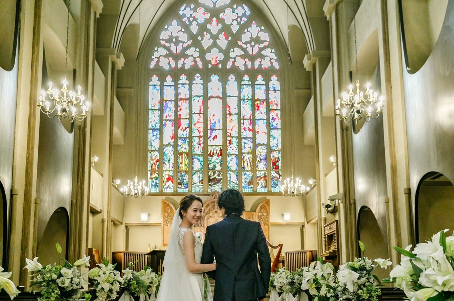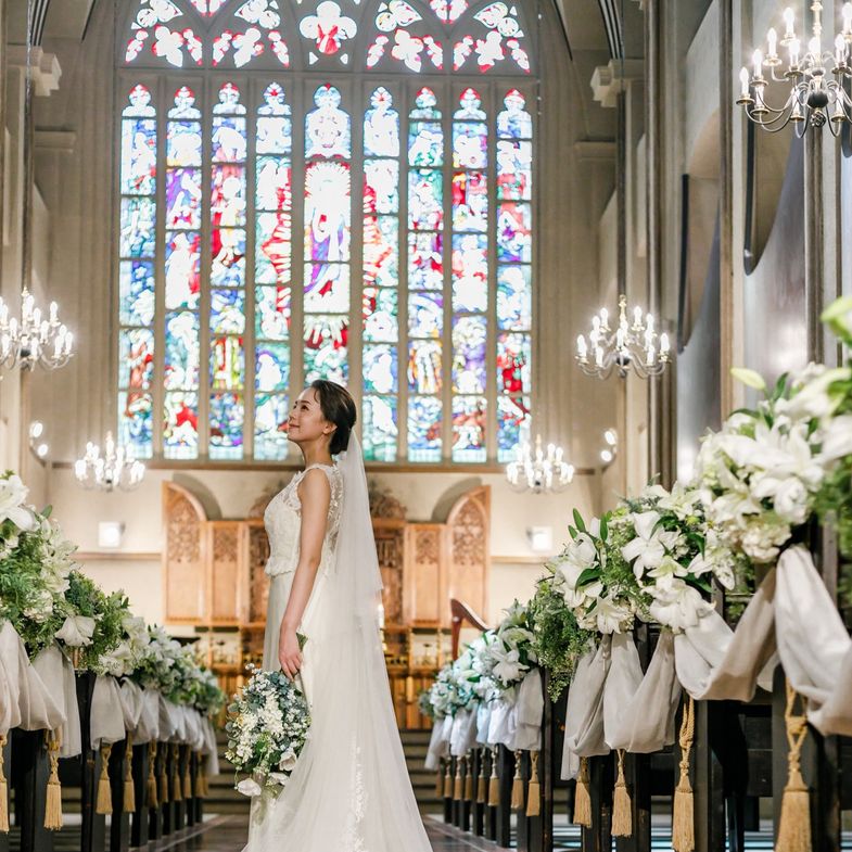 01.【花嫁憧れの大聖堂】本物のアンティークステンドグラス&26mのバージンロードは圧巻!