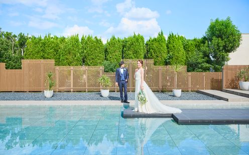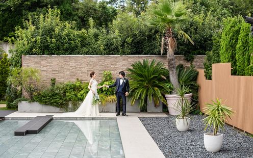 ウォーターガーデン付きの寛ぎに満ちた空間でふたりらしい肩肘張らないウェディングを
