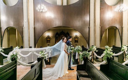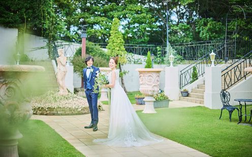 豊かな緑に囲まれた山手の丘に、イタリアの聖地「アッシジ」の石造りの街並みを再現した「マリエール山手」。全て海外から取り寄せたレンガを敷き詰められた外観が特徴的。エントランスをくぐった瞬間から、ふたりとゲストをヨーロッパをテーマとした非日常の空間へ招待いたします。名古屋市内は送迎付きなのも嬉しい限り。アンティークステンドグラスが美しい大聖堂や趣の異なる2つのガーデン付き邸宅を貸切で想い出に残る一日を。