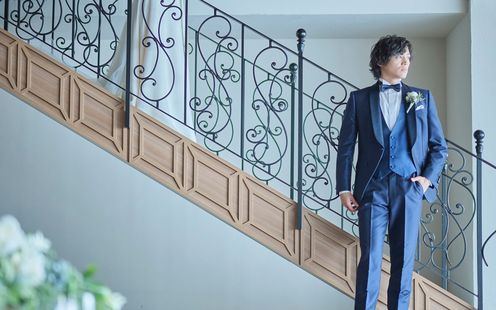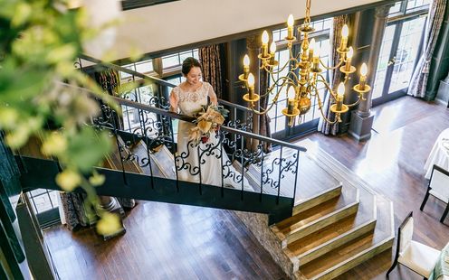 3階建ての螺旋階段ではロマンティックな1枚をおさめることができます。スイートルームで身支度を終えると、ふたりでこの階段を下りてゲストのみんなが待つパーティ空間へ。