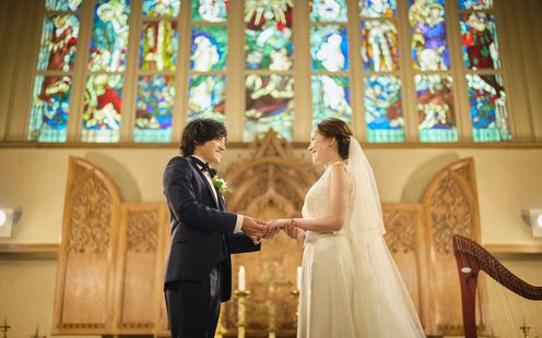 140年前に作られたステンドグラスが輝く大聖堂で家族の絆を大切にした心温まるセレモニーを