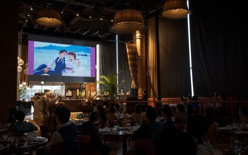 常設の大型スクリーンもご用意しておりますので、海外ウエディングなどのセレモニーシーンなどの映像演出も思いのまま。