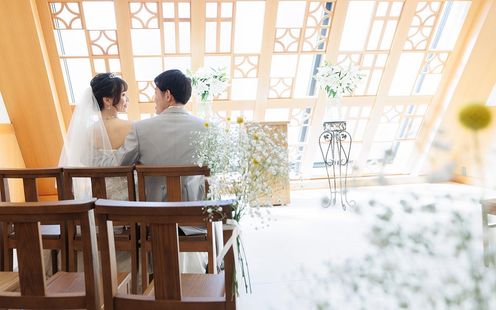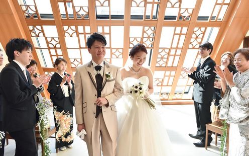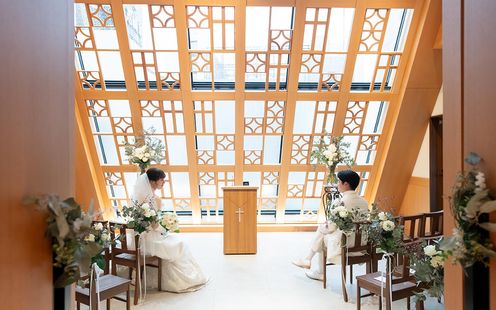 ウッド調の内装、天井高5mの解放感、大人のセレモニーに相応しい新たなステージで心温まる挙式が実現いたします。
