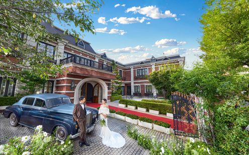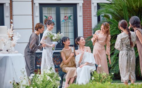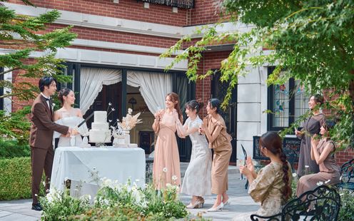 レンガ造りの洋館の目の前に広がるガーデンでふたりらしいおもてなしを