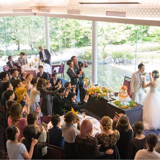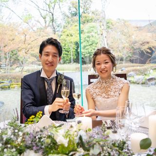 落ち着いた雰囲気ですが、披露宴会場もガラス張りなので解放感があり、ゲストも満足できる空間だと思います。またメインテーブルの後ろがお庭になっており、写真を撮ったトキノ背景が最高でした!