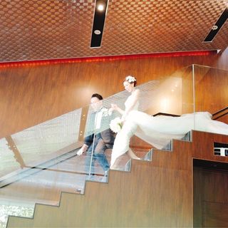 階段があり階段入場もできます。階段を降りる際には、ドレス全体を見せることができるのも良かったです。