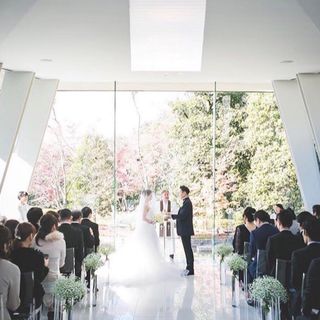 光を感じられるガラス張りのチャペルと、四季を感じられる日本庭園があります。