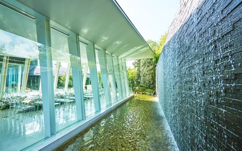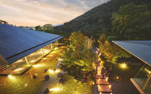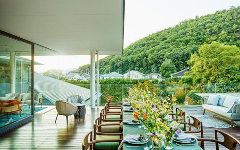 京都市内の風致地区に所在する「京都 北山モノリス」。北山の大自然に浸る絶好のロケーションを一組だけで貸切に。すぐ横を流れる高野川や、 北山の山並を借景として取り込んだゆっくりと時間が流れるこの場所で、京の四季に彩られた美しい結婚式を心ゆくまでお楽しみいただけます。