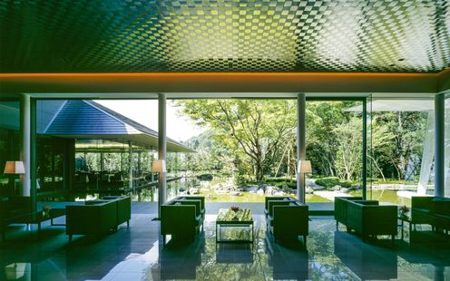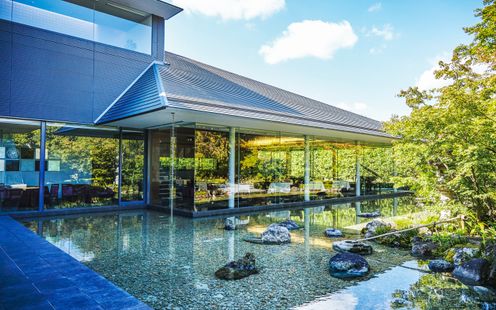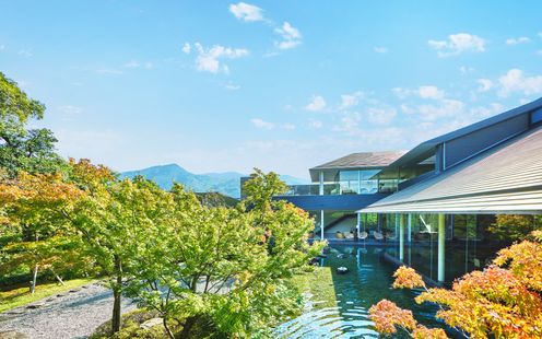 ゲストを最初にお迎えるするラウンジは、モダンな感性が光る上質なインテリアと北山の豊かな自然に囲まれた非日常空間。訪れる人々を、贅と寛ぎに満ちた時間に誘います。