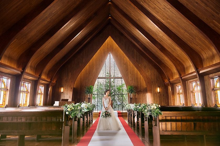 01.<9,000組が誓った木の香りと緑に包まれる本格教会>何年経っても帰ってこられる場所