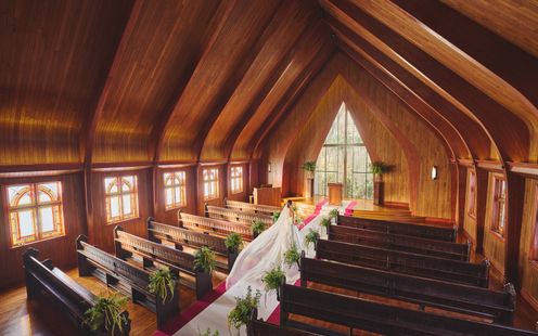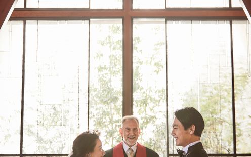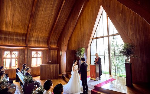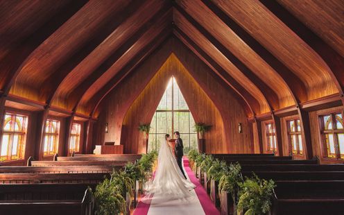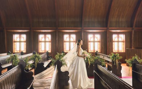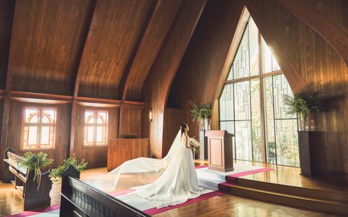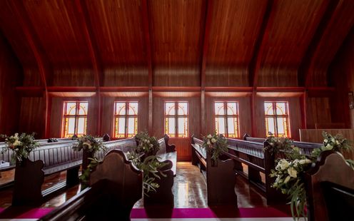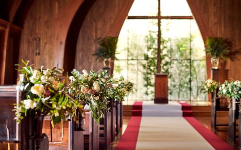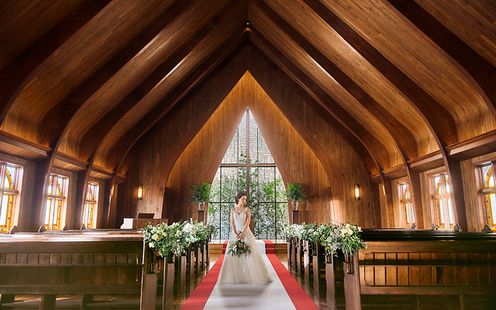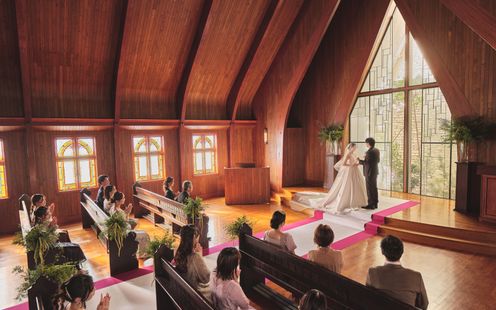 木と花の香りと自然光満ちる礼拝堂がふたりのはじまりの舞台