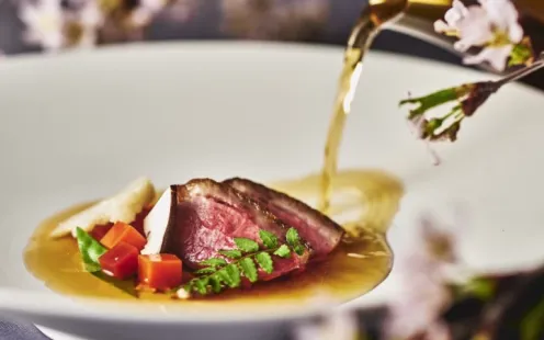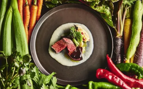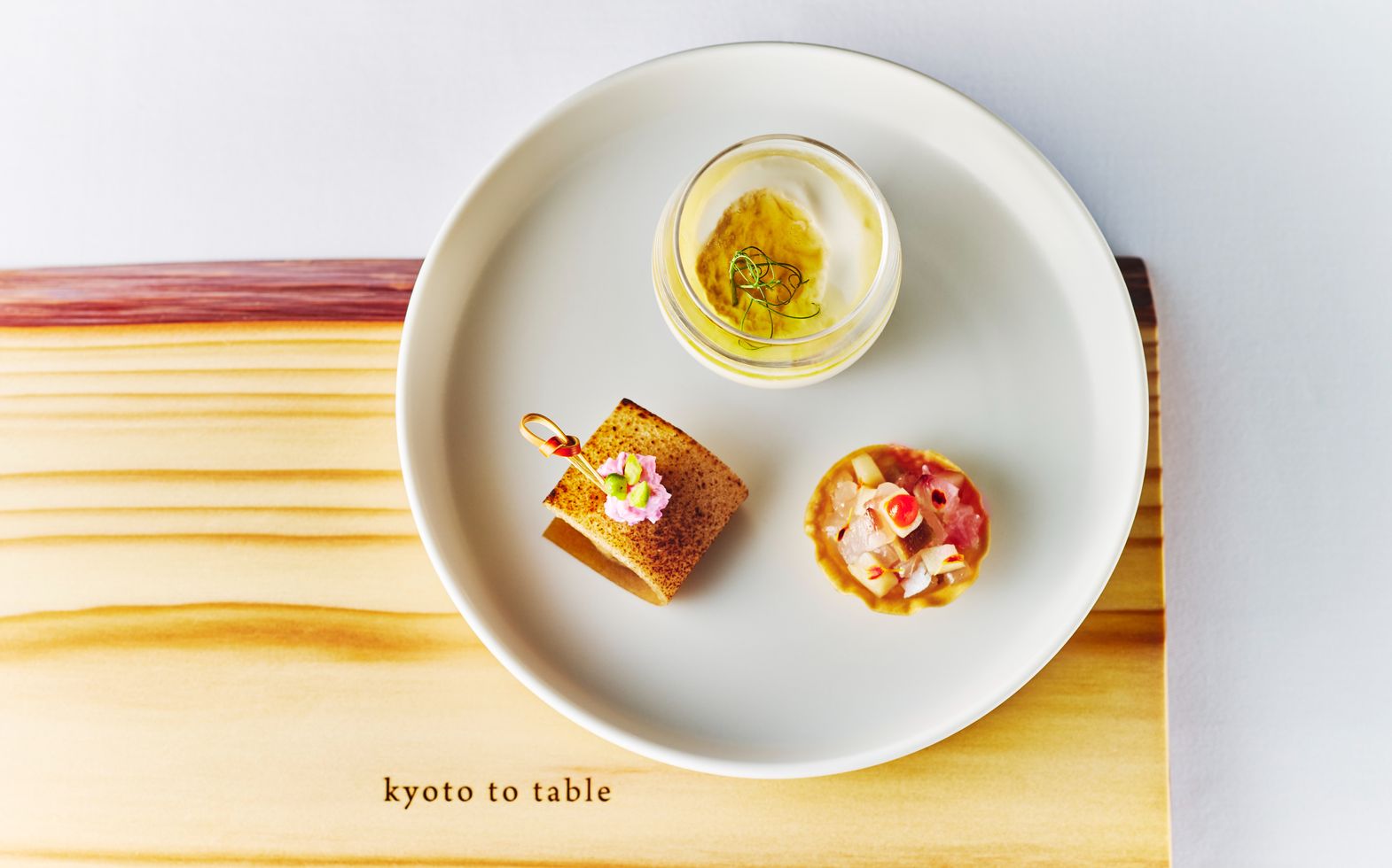 コンセプトに掲げる< kyoto to table >。それは地元・京都を感じていただくこと。 北山近郊の野菜や食材を用いて、日本の美しい四季と凛とした “ 日本人の美意識 ” をお皿の中に表現することを目指しています。おふたりがゲストに感謝を込めて振る舞う料理。 だからこそ身体に優しい料理であることに妥協せず、 特別な “ きょう ” にふさわしい、心が豊かになる料理をご提供します。
